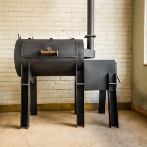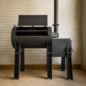 This is a versatile outdoor cooking appliance that uses dual fuel. The BBQ smoker uses both charcoal and wood to impart smoky flavors to food. It has a flexible chimney which can be adjusted to control the temperature and smoke within the cooking chamber. Additionally, its ability to heat up the environment around it makes it a great choice for outdoor gatherings or events where you want to keep your guests warm and comfortable while you cook up a delicious feast.