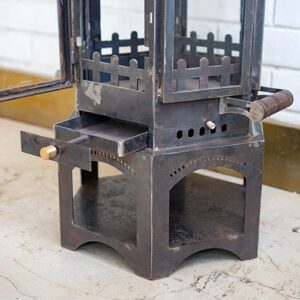Bask in the ambience of the starry night sky and the warm radiance of the dancing flames. This space heater is compact, portable and well suited for your gardens, verandah, gazebos and any other desired space. It has two wooden handles on the side for carrying it, a stand that provides storage for your wood at the bottom, 6 sides each fitted with glass and an efficient air control system that ensures your charcoal or briquette burns cleanly and at your preferred intensity.