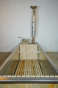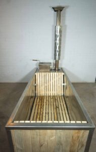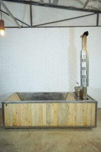 This is a Hot Tub for two, Made with stainless steel and pine wood that withstands hot water. It comes with a wood burning stove that heats the water. This is one of our wellness products line and it has quite a number of benefits for the body such as muscle recovery, improved blood circulation and boosted immune system. This product is also good for your mental health and hence the reason for building this product.