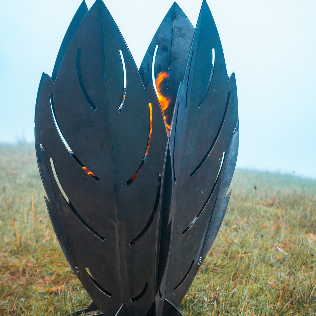 This unique fire pit boasts a beautifully crafted design inspired by the iconic Monstera plant’s leaves. Crafted from durable steel, the intricately cut Monstera leaf patterns cast mesmerizing shadows as the flames dance within, creating an enchanting ambiance.