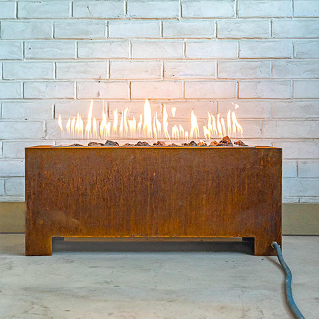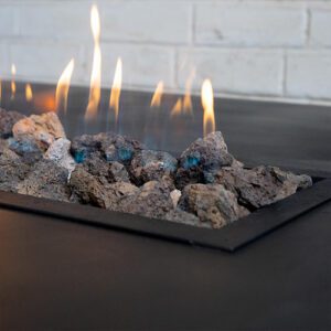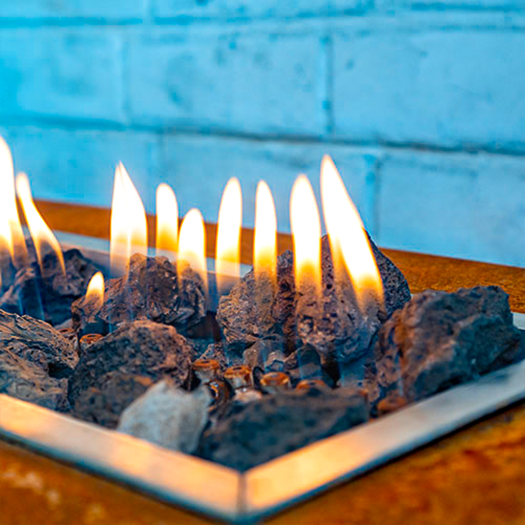 This gas burner is tailored for outdoor settings like tranquil patios, refreshing poolside areas, inviting backyards, and charming decks. It redefines the ambiance of your spaces and is ideal for both residential retreats and commercial settings. Its rusted finish transforms any environment into a captivating haven of warmth and allure while its body boasts a charming rustic finish that complements its sturdy stainless steel lining, creating a harmonious balance of style and durability. Topped with natural lava rocks, it infuses a touch of nature into the scene, enhancing the cozy atmosphere and making it an enticing focal point for gatherings under the open sky.