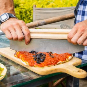 This piece comes with a wooden handle that is easy to grip and the blade attached to the handle which allows ease of use and efficient cutting process through the crust and toppings of a pizza.