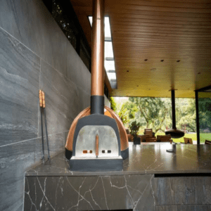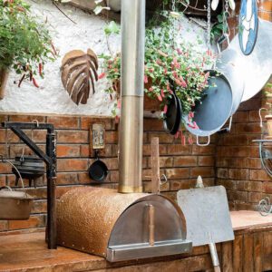 Cook authentic pizza at home, right at the back of your garden with your own pizza oven. Our pizza oven can be copper clad or finished in stainless steel both with a fire brick base. It is well insulated with a metal roof in the oven to heat it up quickly. Once heated up the pizza oven can cook in a matter of minutes.