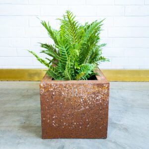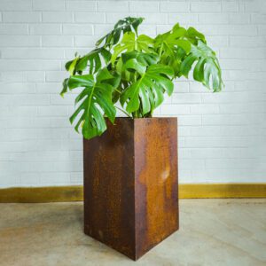 These trendy steel planters with rust oxidized finish are sturdy and worn to perfection, and they look just as well indoors as they do outside on your deck or patio. The planter pot is easily removable allowing for drainage and cleaning. They come in a variety of sizes, so you can choose the one that best suits your needs.