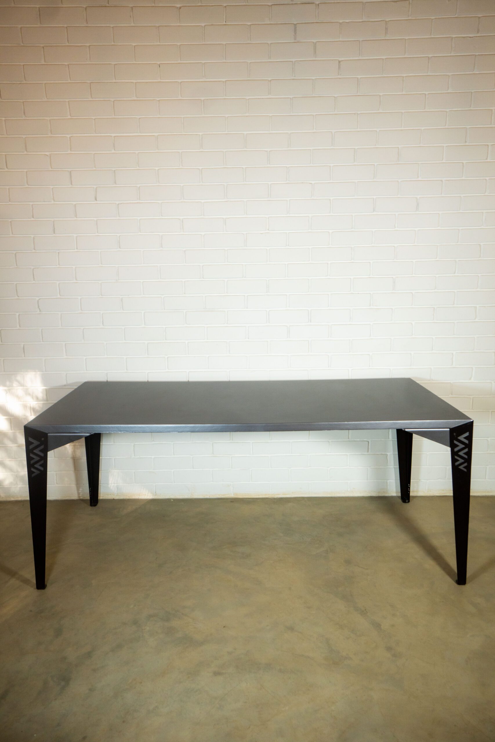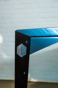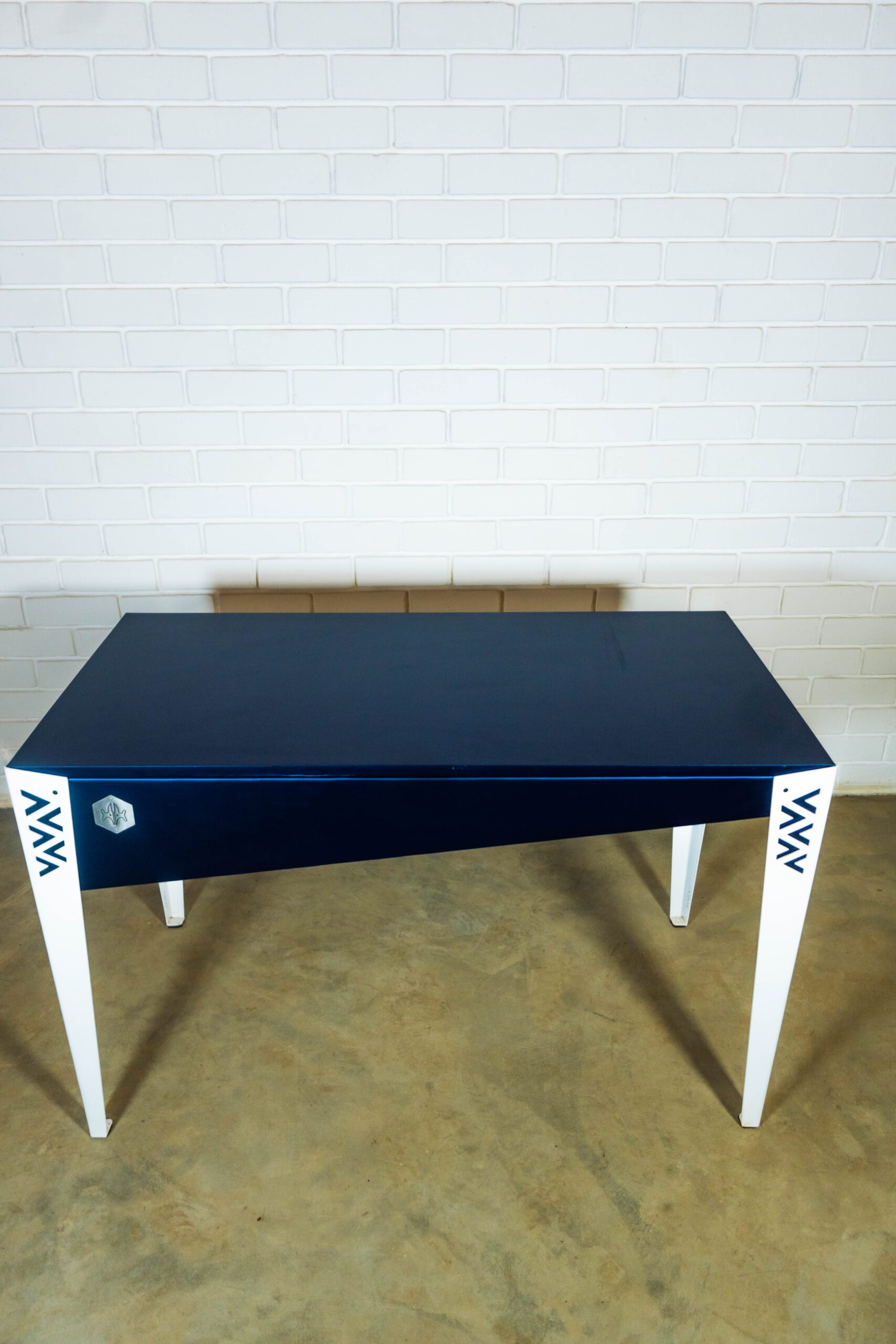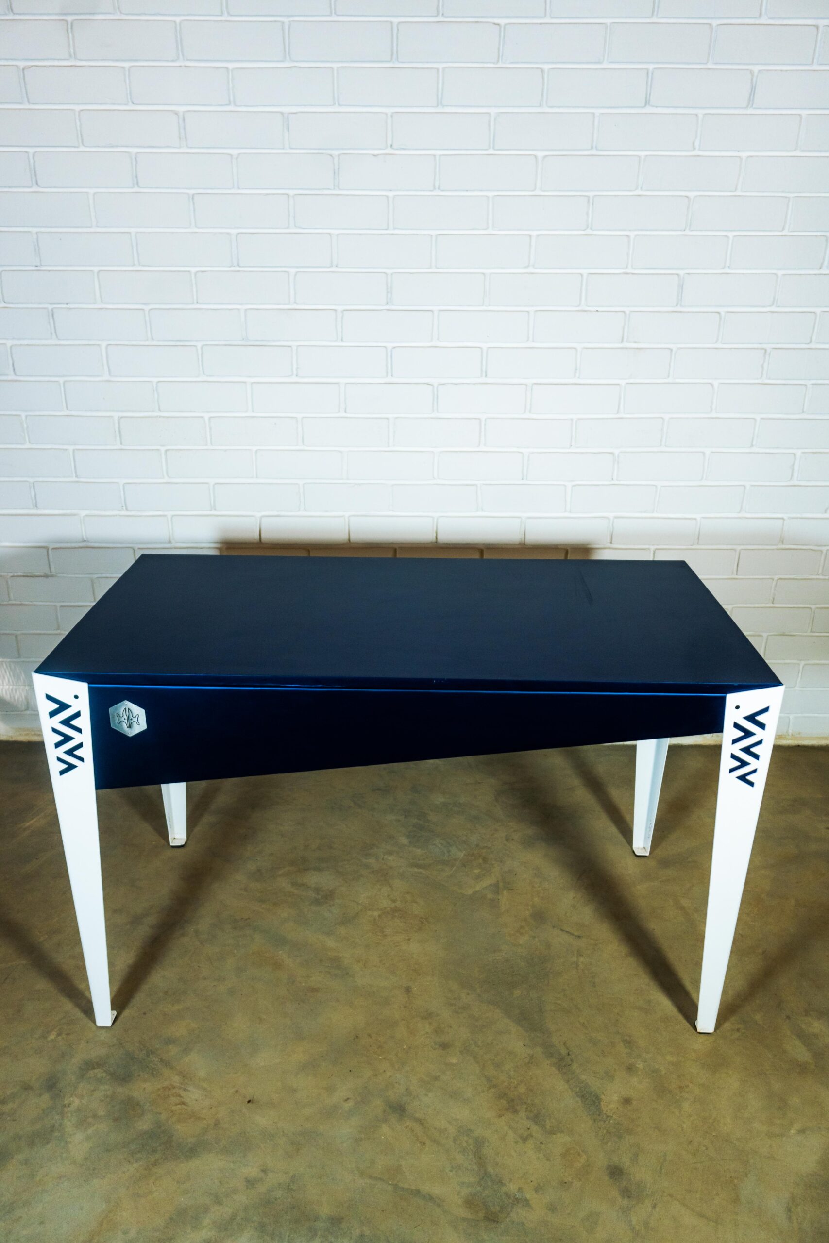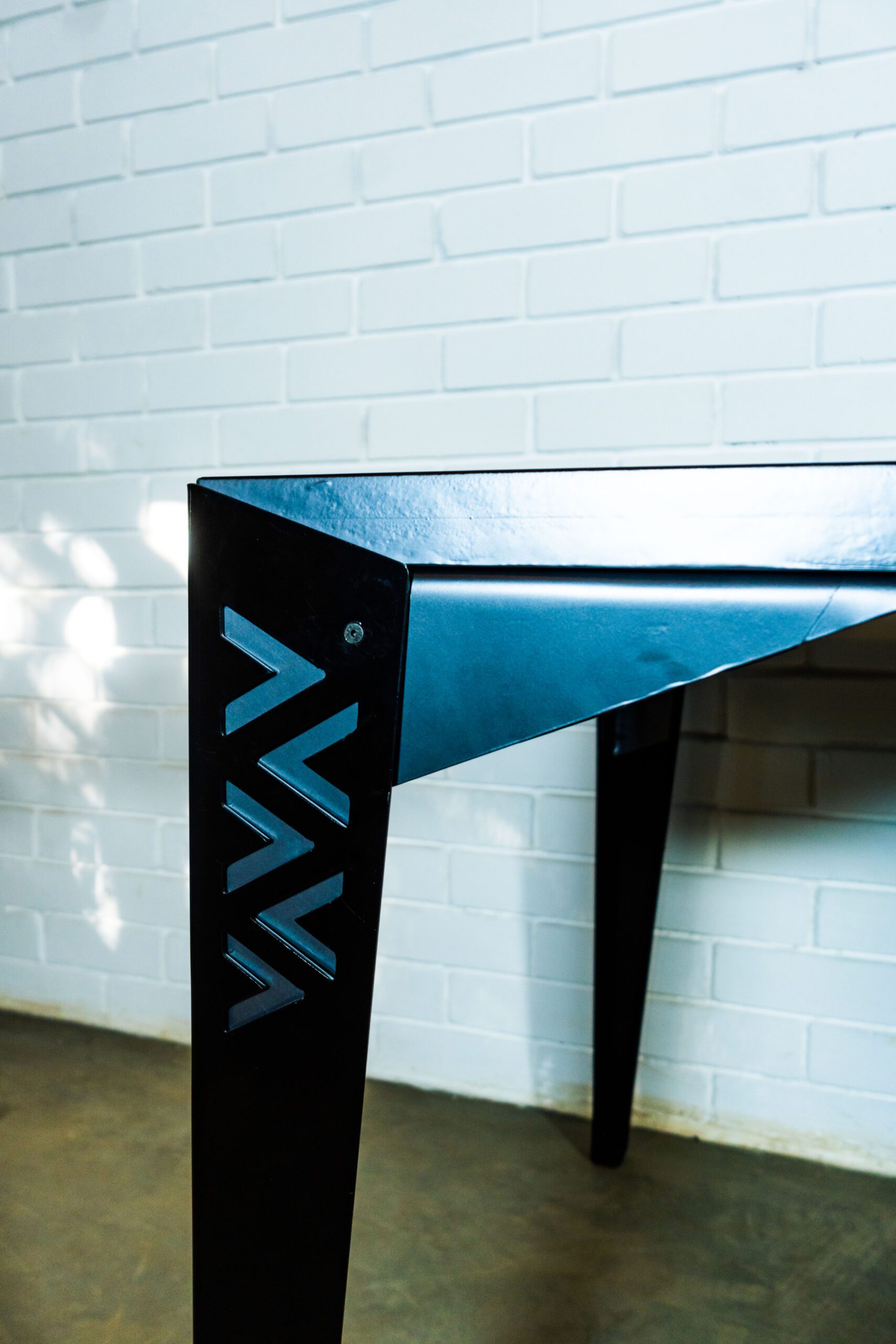 This table is made of metal and wood which makes it very stable and the finishing on it creates a really good look and feel. This would work well in an office set up and also custom made to fit your preference.